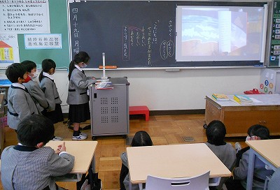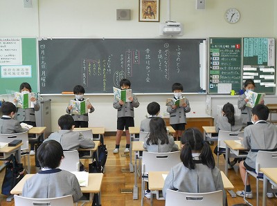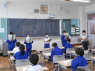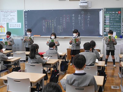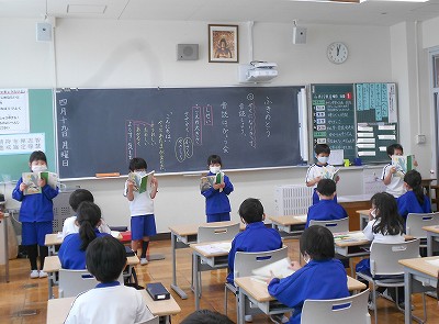 国語の時間と昼根っこタイムの時間に、「ふきのとう」の音読発表会をしました。