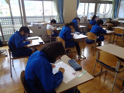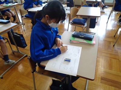 計算プリントをノートに貼り付けた後は、2クラスに分かれて授業を進めました。
