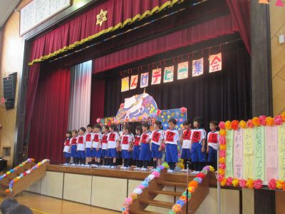 ドキドキしながら舞台の上に立ち、自己紹介や音読と歌の発表をしました。