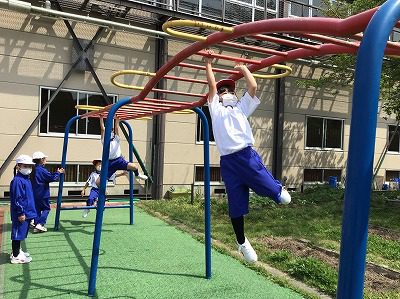 その後、雲梯をしました。それぞれ自分のいけるところまでチャレンジしました。