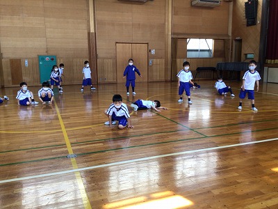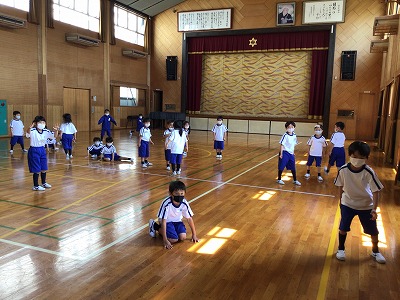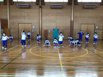 今日は、運動場1周、準備体操、鬼ごっこの流れでスタートしました。変わり鬼や氷鬼をして、たくさん走ることができました。