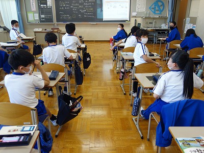 昨日、自分で予想した「暖かい沖縄で住む人々のくらしの様子」を学級全体で意見交流をしました。話し合いが進めやすくなるように、話し合いのときのハンドサインや発表の仕方などについても確認しながら進めたので、少し時間がかかりました。「暖かい気候」「海に囲まれている」「台風が多い」ことなど、自分自身の生活経験を照らし合わせながら、沖縄の衣食住について、独自の予想を仲間とディスカッションすることが楽しめたようです。