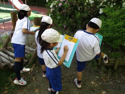 子どもたちが集中して「春」を探している様子です。