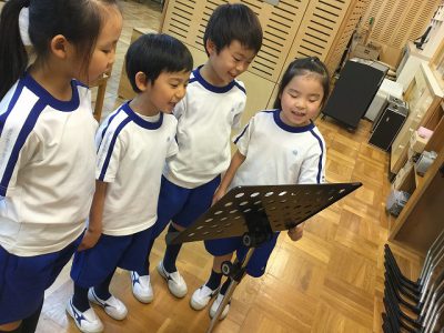今日の朝は、英語朝体操がありました。