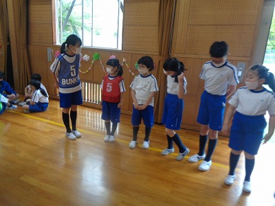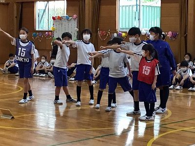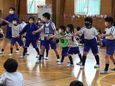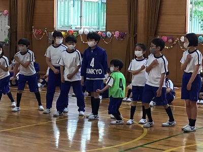 班長さんを中心にやさしく教えてもらって、パフォーマンスでは早速班の一員として声を出したり、身振りをそろえていました。