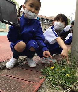 前回確認した「たんぽぽ」や「はるじおん」「からすのえんどう」「しろつめくさ」「かたばみ」「ほとけのざ」「なずな」「おおいぬのふぐり」などの草花を学習園や八池の杜へ見つけに行き、そこで、ロイロノートで写真を撮りました。