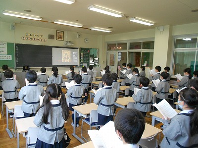 今日も、みんなで声をそろえて仏教聖歌を歌っています。やさしい声が響いています。