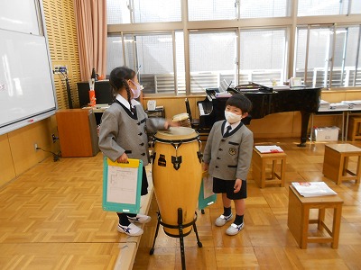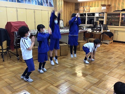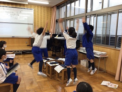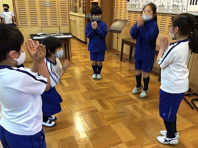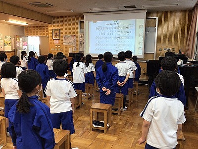 「♪あの青い空のように」を歌い始め、もうすっかり、2年生のレパートリー曲になりました。掛け合いの歌い方ができるので、列ごとや男女に分かれって歌い合っています。