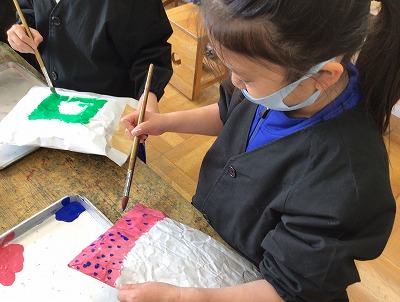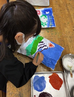 5色を混ぜて、たくさんの色をつくる姿がたくさん見られました。