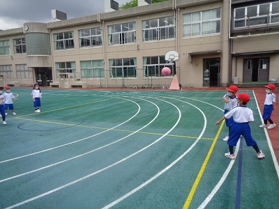 4/22金【2年生と学校探検・楽しく中当て!】