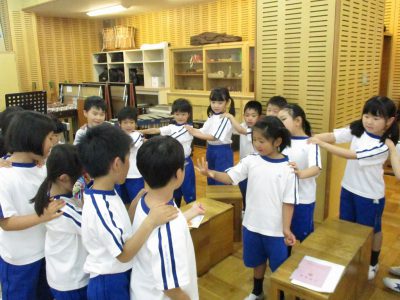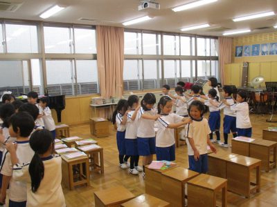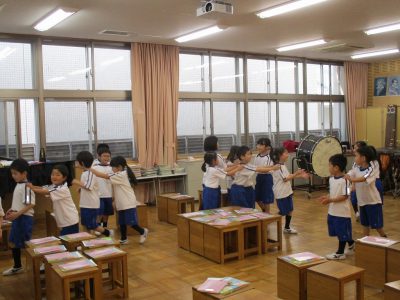 歌詞の意味を学び、礼をするところも覚えながら歌っています。