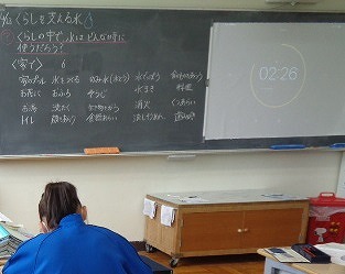 今日から「私たちのくらしを支える水」という単元の学習です。毎日当たり前のように使用している水ですが、一体どんな時に水を使うのか、みんなで話し合いました。「お風呂!」「トイレ!」という意見も、だんだん盛り上がってきて、「流しそうめん!」などの面白い意見も登場しました。無くてはならない「水」という資源の大切さを知りました。
