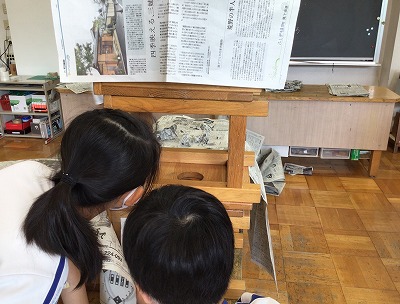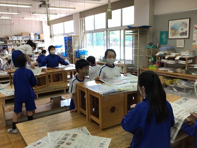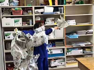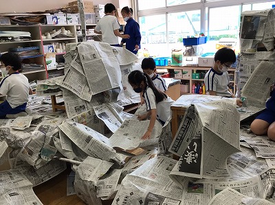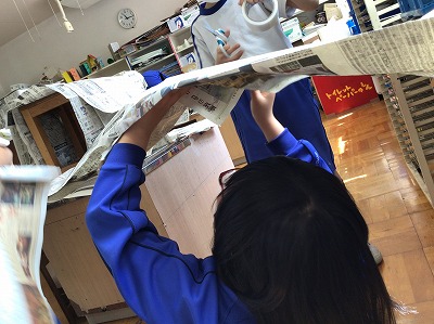 最後はいつもの造形室に戻します。新聞紙の片付けまで楽しんだ4年生でした。
