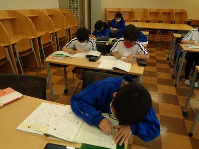 引き続き、学習室の算数は「分数÷分数」の計算の練習を行いました。「逆数をかける」ことが分かって、正答が導き出せるようになってきました。