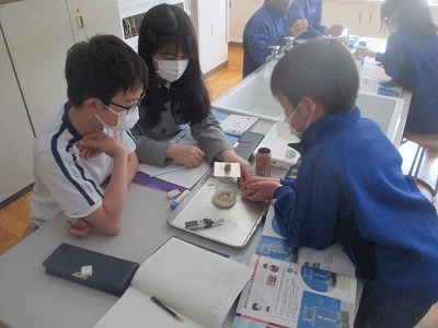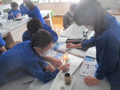 出入り口が上と下では、結果が異なります。そこで、温められた気体の動き(対流)や二酸化炭素について学習しました。