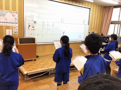 仕上げには、強弱記号に注意して、いろいろに歌唱を行いました。