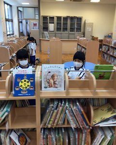 英語の本や、なぞなぞの本、使うのはまだ先ですが国語辞書など、短時間でしたが、友達と教え合って、あっという間に全部見つけていました。