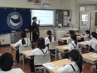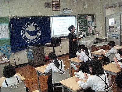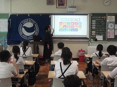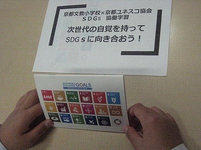 京都ユネスコ協会より、常任理事の江木先生(本校 元教頭)をゲストティチャーにお迎えして、「次世代の自覚を持ち、SDGsに向き合おう!」というテーマの講演を聞きました。