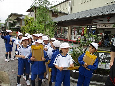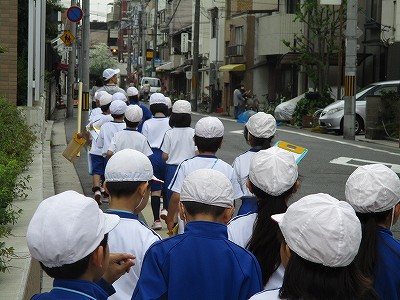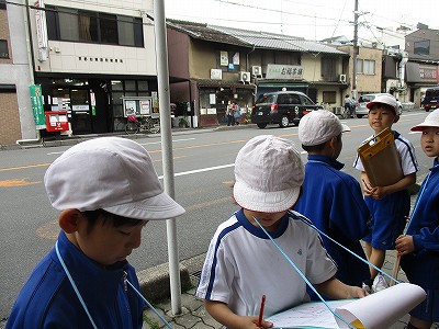 4時間目の社会の学習で、学校の南と東エリアに町探検に行きました。