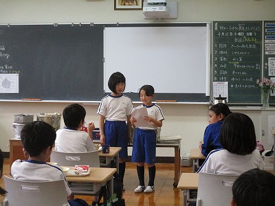 給食は、おいしいカレーをいただきながら、クイズ係さんのクイズで盛り上がりました。
