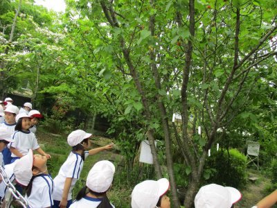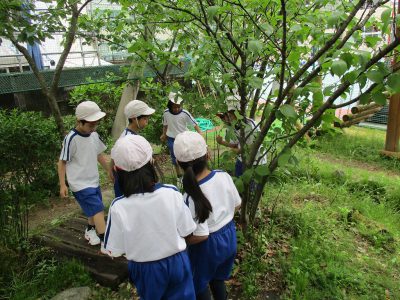 生活科の時間は、「ビオトープ」での約束を確認した後、ビオトープの探検に行きました。