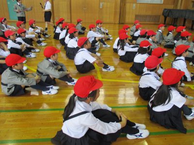 保健室では、手当をしたあと、教室に帰るときに「おだいじに」と声かけをしています。