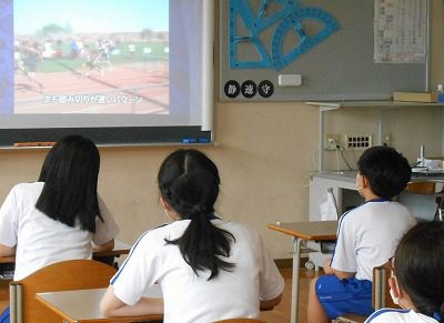 すると、頭の高さがどのぐらい変化しているのか一目瞭然です。自分の動きを分析しながら、次の学習では、より速い記録を出せるように挑戦します。