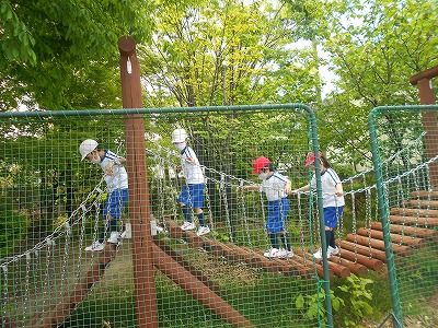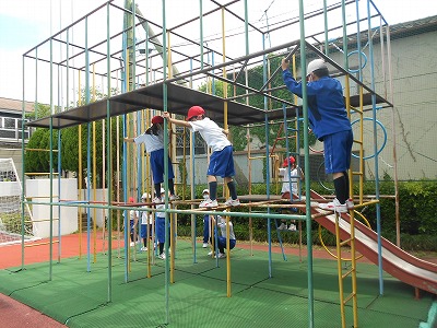 サクランボがたくさん実っているビオトープに行ったり、鉄棒・ジャングルジムで遊んだりする姿が多く見られました。