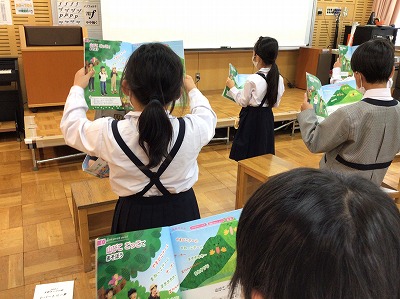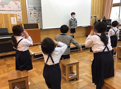終わりには、友達数名に登場してもらい、「山びこさ~ん」「うれしいよ~」と前に出て、“山びこごっこ”をしました。始めに出てきてくれた友達が、フレーズを付けてくれたので、次に続く友達も、節を付けて歌うように発表していました。