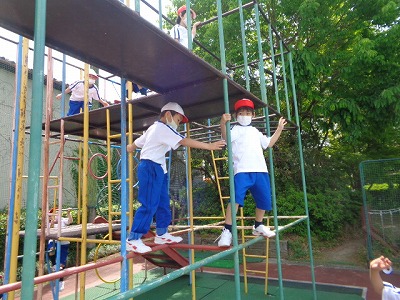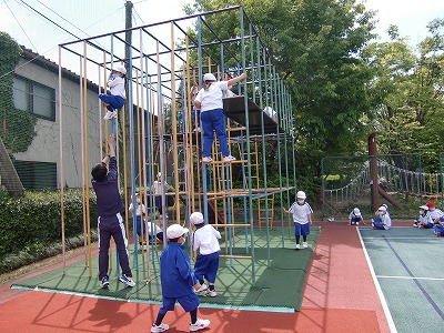 ジャングルジムで登り棒を登ったり、3Fまで登ったりしました。