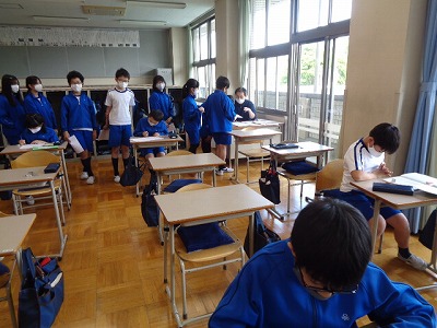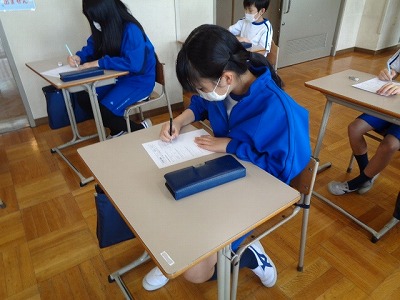 6年教室の玉井クラスは、「平均算」のプリントに入りました。集中して取り組んでいます。