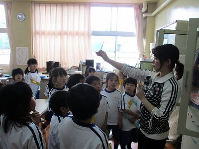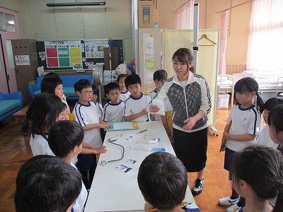 まず、先生のお話を聞きながら、保健室にあるものや、先生がお仕事で使っておられる道具を見せてもらいました。