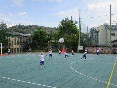 お兄さんやお姉さんは6校時の学習をしているので、グラウンドにいるのは1年生だけです。