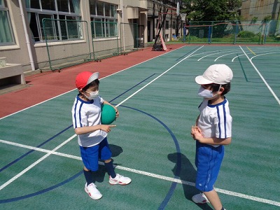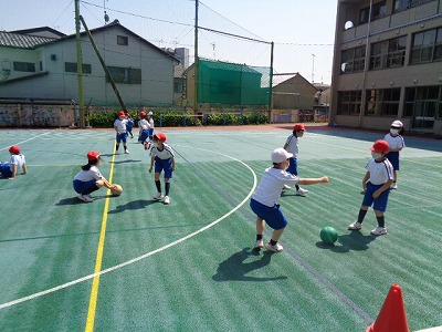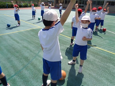 担任が「ボール」と言ったら取るという簡単な運動です。