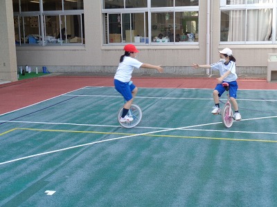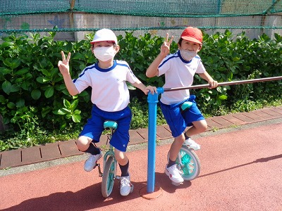 残った時間で、一輪車や遊具を楽しみました。