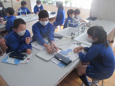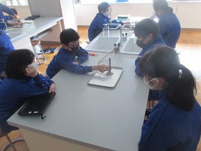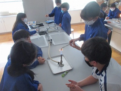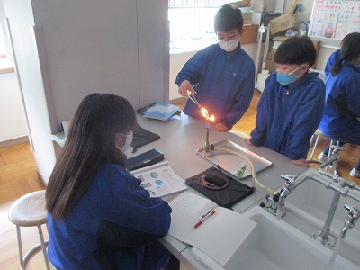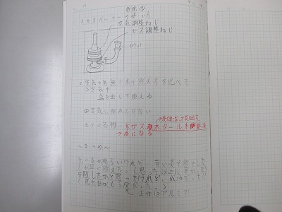 手順に沿って、バナーに火を付け、空気の量で炎の様子が変わることを確かめました。