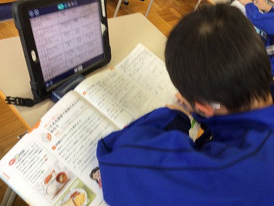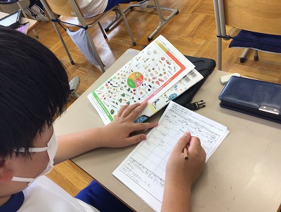 まずは、先週の続きから学習を始めました。文教ランチを題材に、“栄養バランス”チェックを行っています。