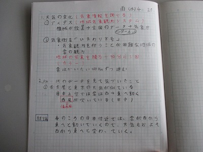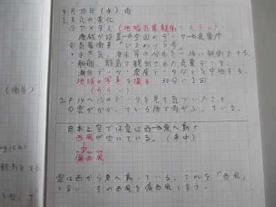 前回は「アメダス」にいて調べたので、今回は「気象衛星」について、iPadを使って調べました。調べた内容はノートにまとめます。