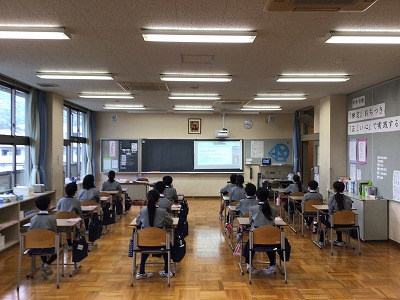 今日水曜日は「礼拝」でのスタートです。これまでと同様に、とてもよい姿勢で学校長の話に耳を傾けていました。