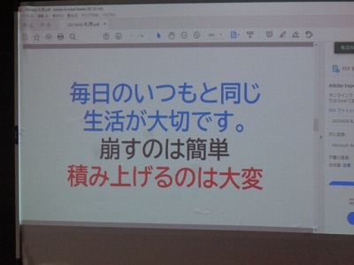 それは「読書」です! また「『早寝・早起き・朝ごはん』で毎日同じリズムで生活することが大切です」というお話でした。「崩すのは容易ですが、積み上げるのは大変なのです」という言葉が、子ども達に響きました。