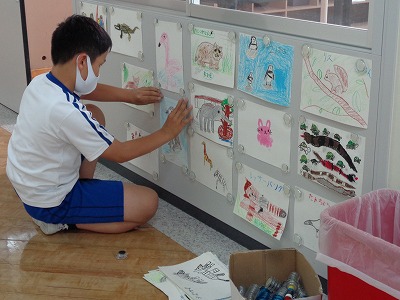 また、過去に実施した「力合わせ動物イラスト」の掲示をしました。動物たちが大集合です。校内が明るくなりました。