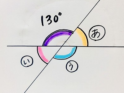※ヒント:130°+「あ」°= 半周分の角度(何度だったかな???)