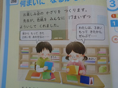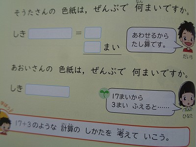 よういされた17まいの色紙と 2人が それぞれ家から もってきた色紙が あることが わかりましたか?