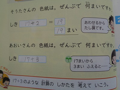 17まいから 3まい ふえると・・・17+3に なりますね。