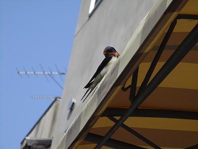 ツバメです。巣(す)を作ろうとしているのでしょうか?