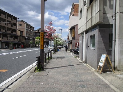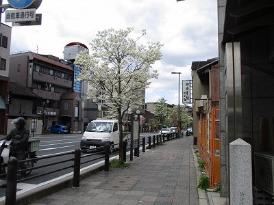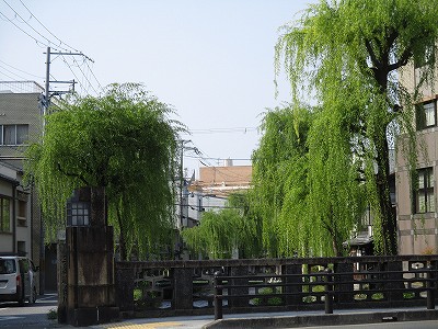 白川が見えてきました。仁王門どおりでわたった白川は、三条どおりをこえて、さらに南の方へ流れていきます。
