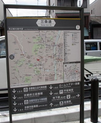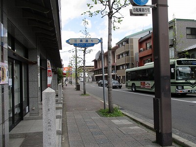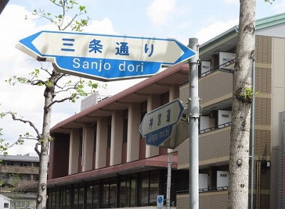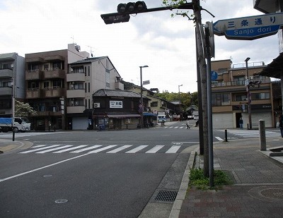 神宮道と 三条どおり の交差点に きました。ここから、右に まがって、西に向かいます。
