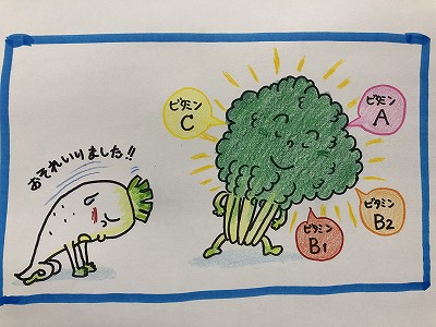 名前の通り、大きくて 白い根が 特ちょうで、ビタミンCが豊富な野菜です。
