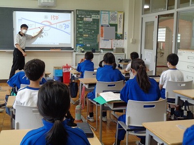 復習の後は、テストの時間です。難しい問題もありましたが、分度器を上手く使いこなし、黙々と解いていました。