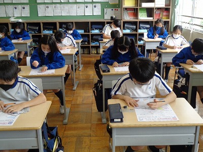 昼根っこタイムは「都道府県テスト」に挑戦しました。これまでコツコツ家庭学習などを通して、暗記に取り組んでいる児童もいたようです!